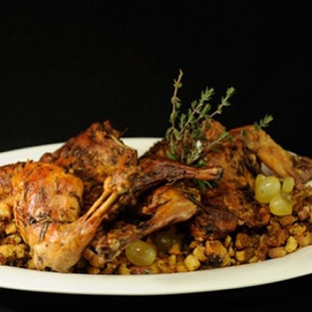 Conejo Asado con Migas de Pan y Uvas