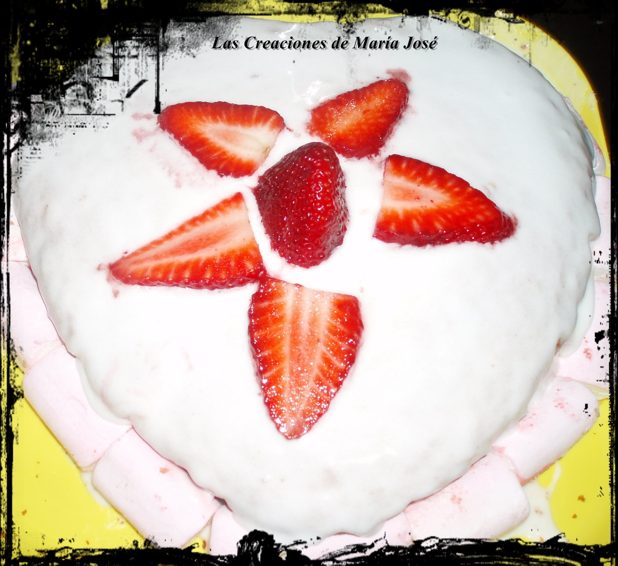 Se corta el bizcocho en 2 partes, se remojan con el licor de fresa. Se monta la nata y se echa en la parte de abajo del bizcocho, se pone la tapa de arriba. Se hace la glasa y se cubre. Yo las decore con unas fresas.