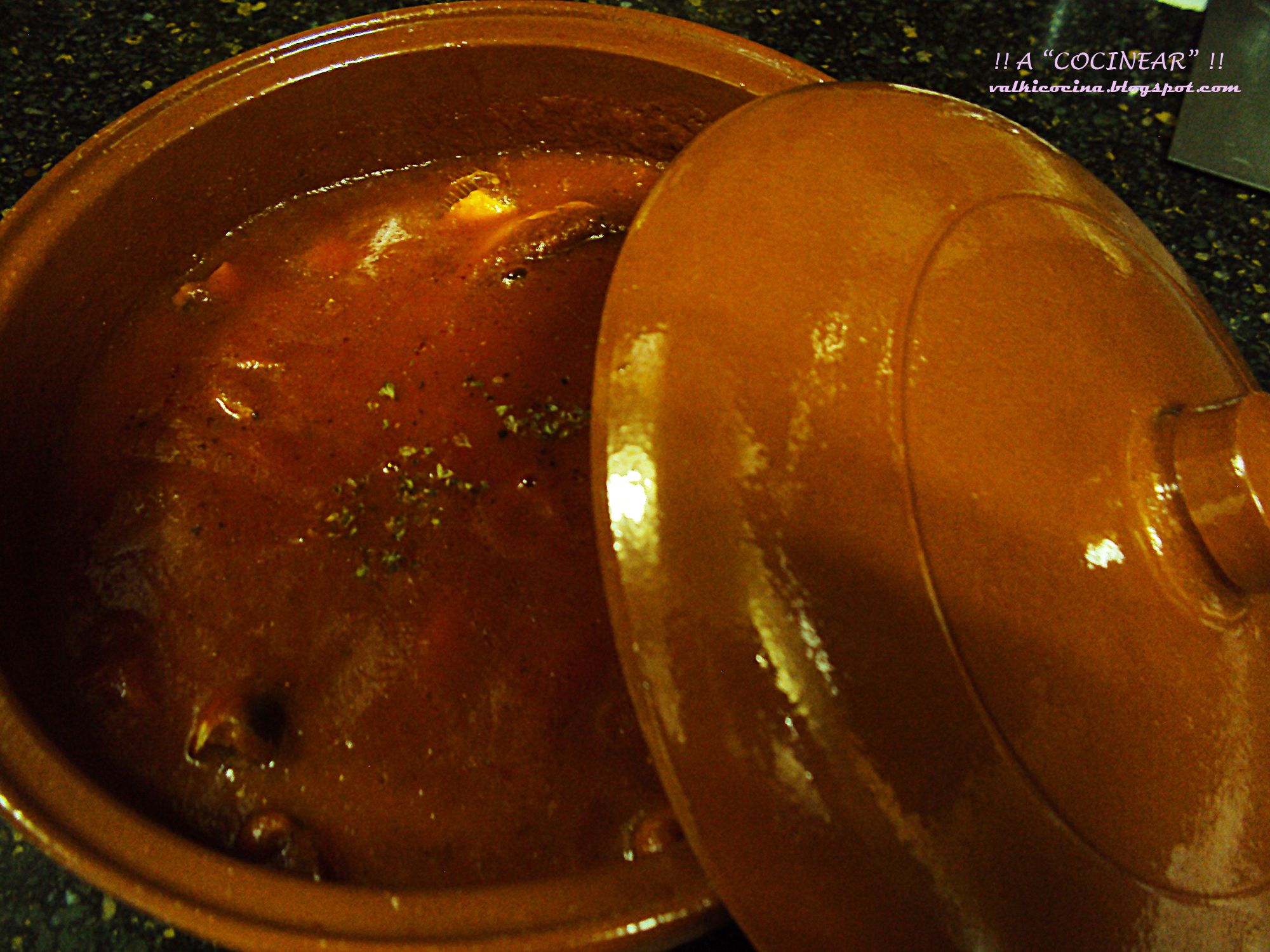Ahora, vertemos un poco de la salsa en el fondo de una cazuela de barro, ( .. o una olla normal si no tienes ), y colocamos una primera capa de sardinas, ...cubrimos con más salsa, ponemos otra capa de pescado, y terminamos de cubrir.