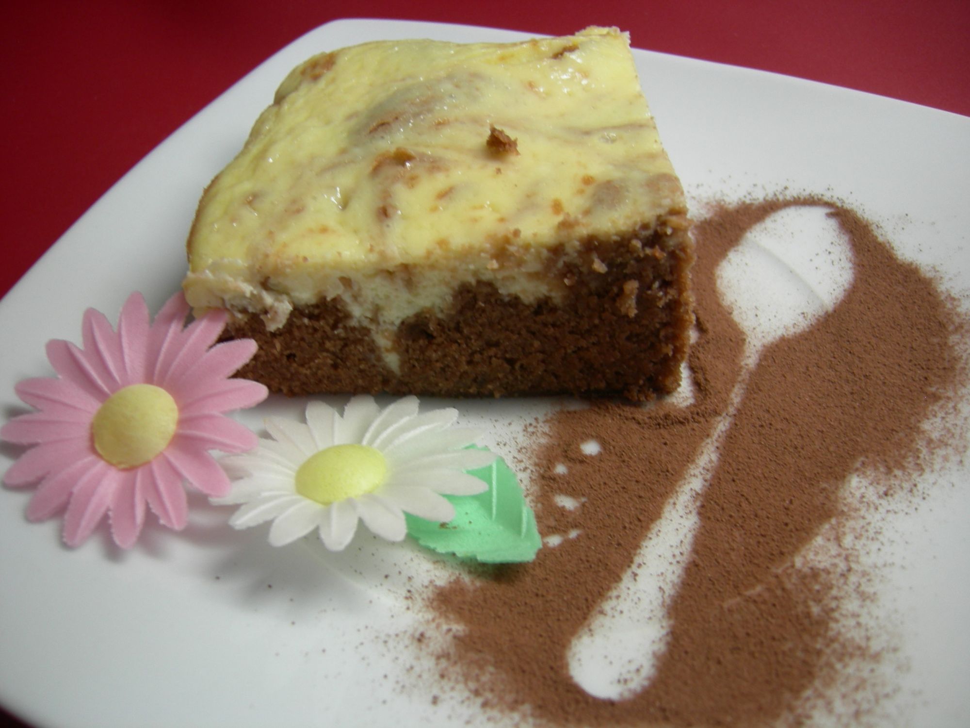 A continuación, batimos los ingredientes del cheesecake. Lo ponemos con ayuda de una cuchara encima de la otra masa y lo nivelamos.