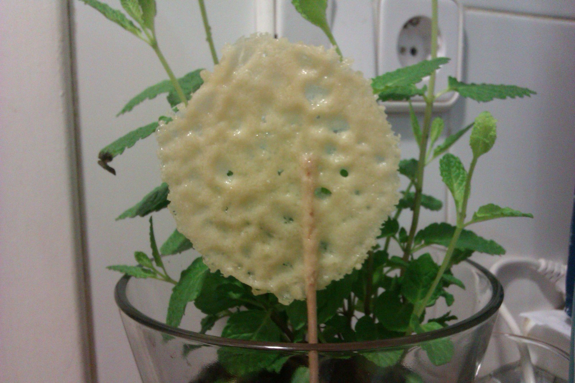 Llenar una cucharada de queso y vaciarla en la parte alta del palillo, de manera que lo cubra parcialmente. Aplastar después el parmesano con la cuchara.