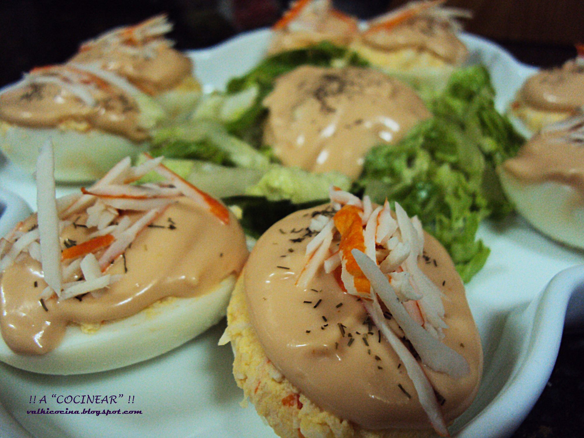 Huevos rellenos de surimi con salsa rosa