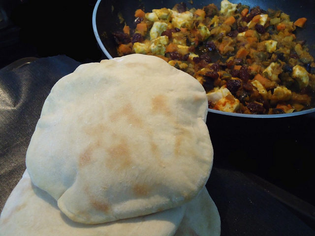 Hornear las pitas hasta que veas que se hinchan por completo y cogen un poquito de color, no tienen que dorarse o quedarán duras.