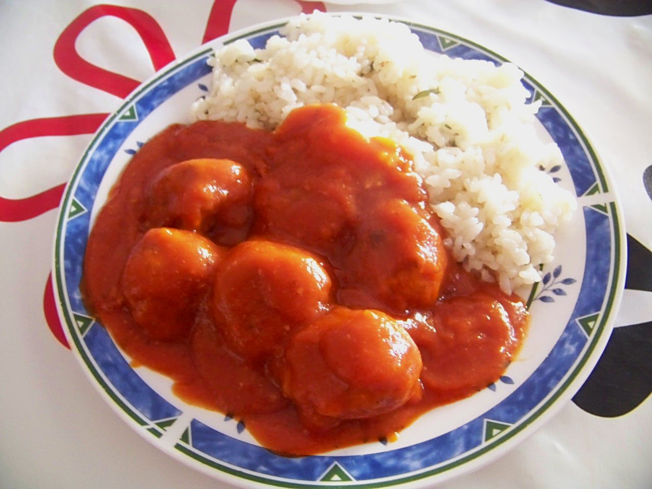 Calentar tomare frito, añadir medio vasito de vino, dejar hervir y añadir las albondigas y un poco de sal.