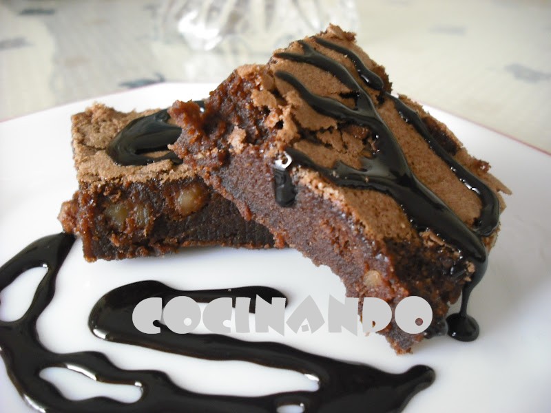Cortamos en porciones rectangulares y lo servimos acompañado de sirope de chocolate.