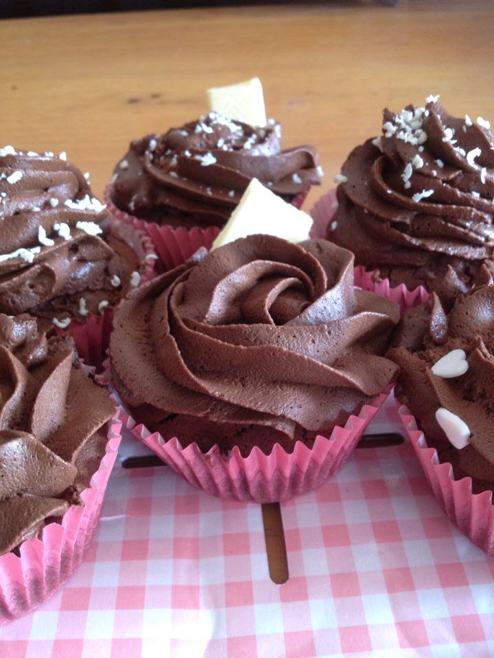 Montarlo con unas varillas y decorar los cupcakes con una manga pastelera y la boquilla de estrella