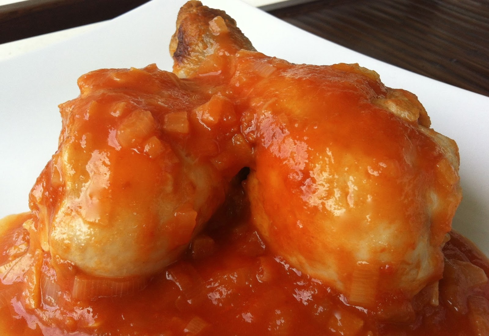 Cuando tengamos todo el pollo frito, raspamos el fondo de la sartén, y vertemos el tomate