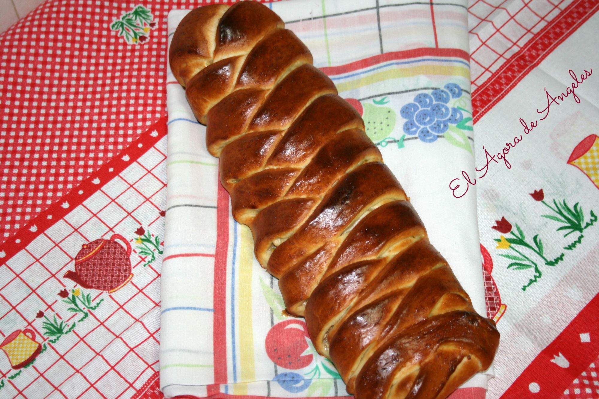 Pintamos con huevo batido y horneamos a 200° una media hora vigilando que no se tueste mucho por encima,si es así, ponemos papel aluminio sobre la trenza.