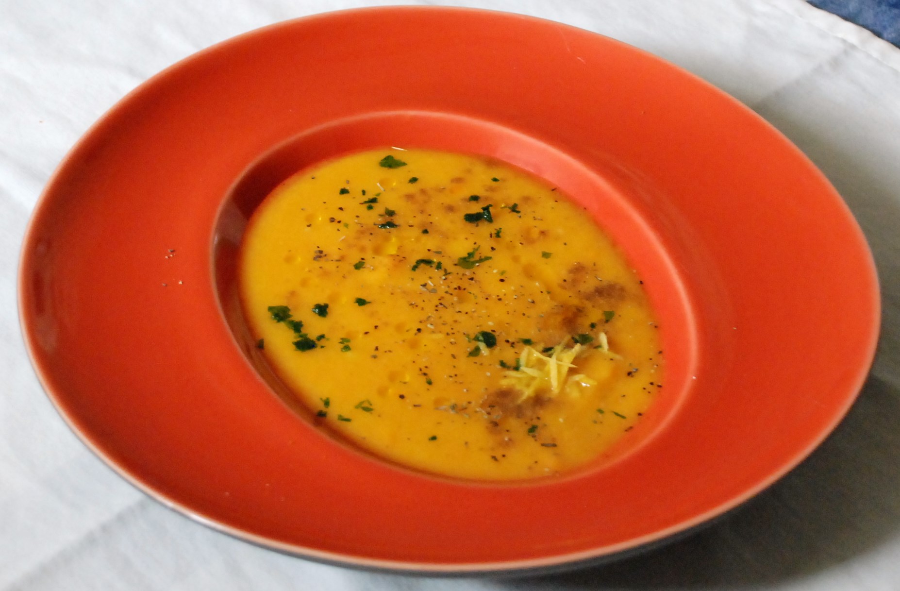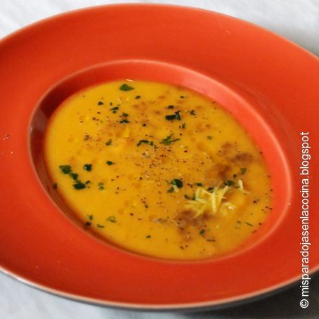Lavar, pelar, sanear y cortar la verdura (según se precise) que ponemos en la olla exprés con un chorito de aceite de oliva a nuestro criterio. Verter agua sin que llegue a cubrir, poner sal al gusto y la hoja de laurel. Llevar al hervor, cerrar y contar 15 minutos desde que el pirindolo comience a dar vueltas regularmente. Finalizada la cocción, pasamos con la minipimer o similar procurando dejar muy fino y rectificamos de sal si fuera necesario. Servir, sazonar con pimienta negra recién molida, cominos molidos, orégano y cáscara de limón más un chorrito de aceite de oliva.