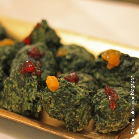 Cocemos las espinacas en agua con sal durante 3-4 minutos. Escurrimos bien, agregamos pasada la hora las espinacas a la masa y mezclamos bien.