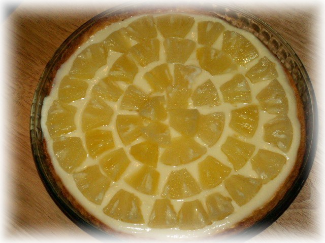 cuando haya enfriado un poco q empiece a solidificar se le puede poner por encima rodajas de piña coratadas en cachitos pequeños. Opcional.