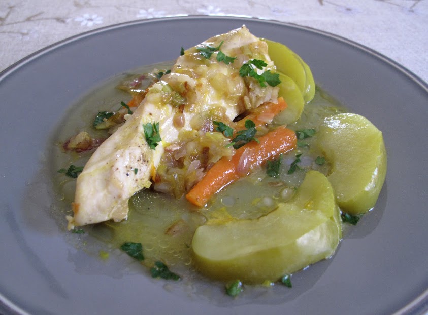 Supremas de pollo con manzana, zanahoria y jugo de naranja