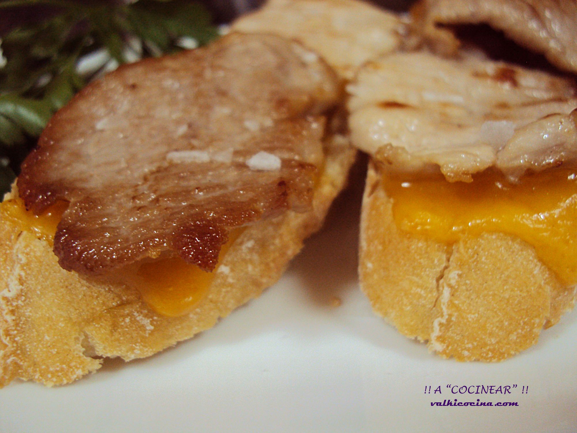 Montadito de secreto de cerdo y queso Cheddar