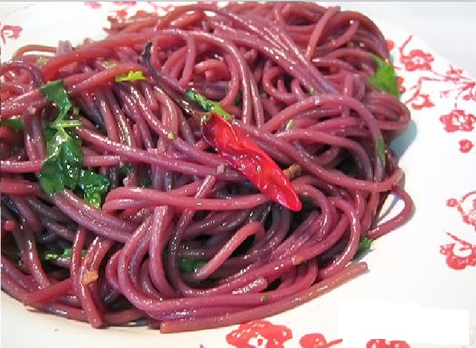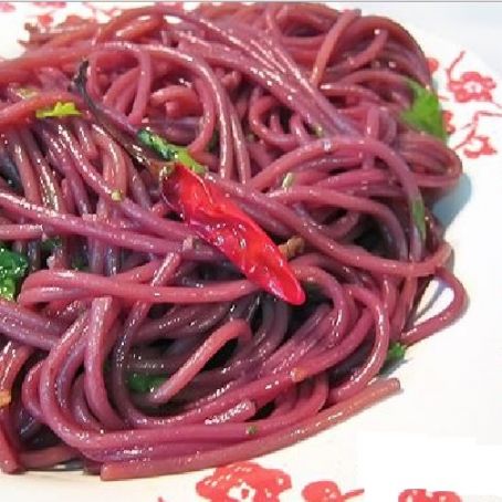 Com van a ser dues coccions, la de l'aigua i la del vi, hem de treure'ls als 6-7 minuts, escorrem els espaguetis i els tirem a la cassola amb el vi negre. En aquest moment pugem la temperatura a un foc mitjà-alt i acabem de coure els espaguetis fins als 12-14 minuts, és a dir altres 6-7 minuts. (Dit d'una altra manera, la metitat de la cocció l'han de fer amb l'aigua i l'altra meitat a la cassola del vi, depenent dels espaguetis que hem triat serà més o menys estona de cocció).