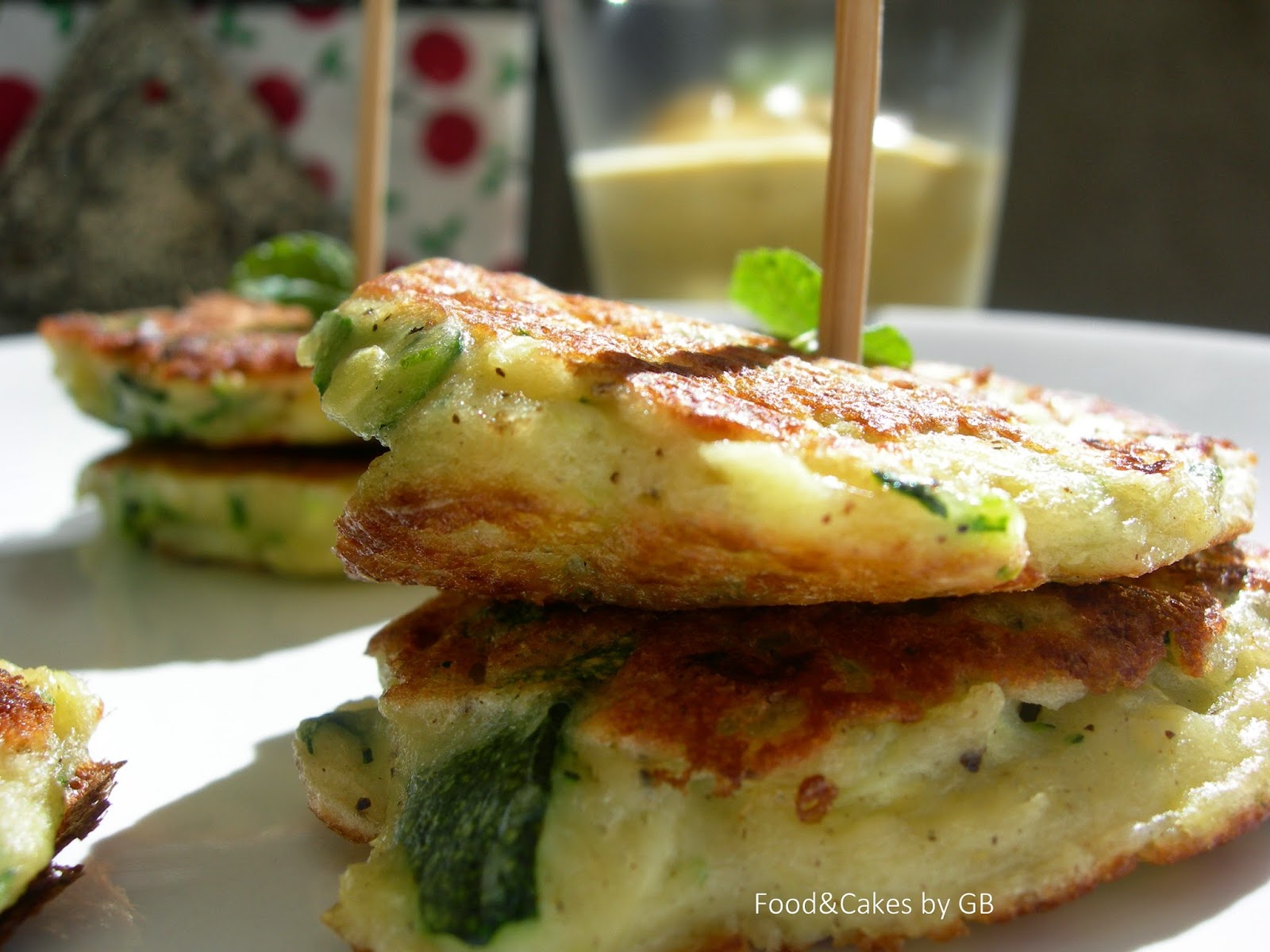 Rösti de calabacín, queso y salvia con salsa de yogurt al curry