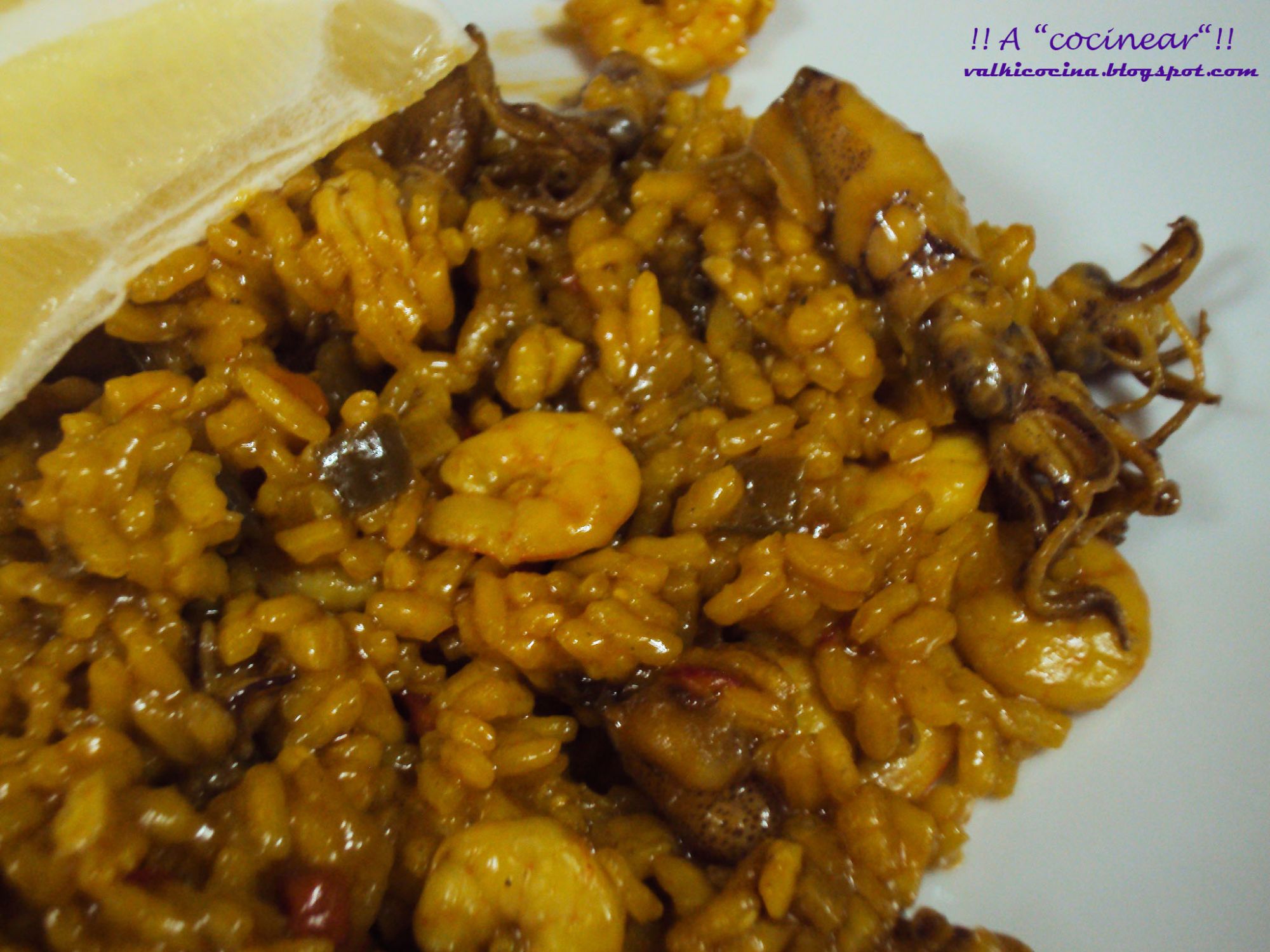 Arroz con chipirones y gambas