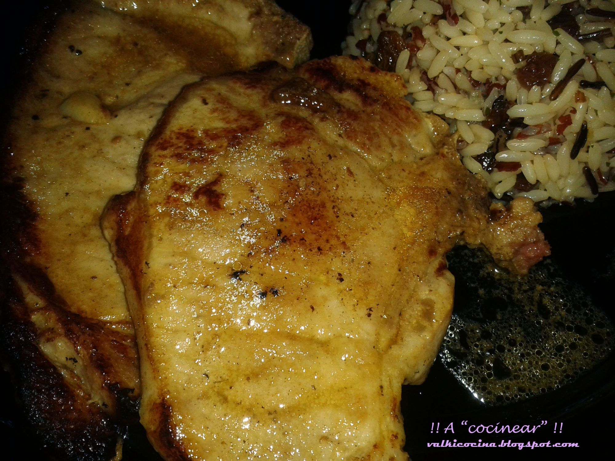 Unas modestas chuletas de cerdo, se convierten con esta simple marinada, en más apetecibles, y sabrosas.