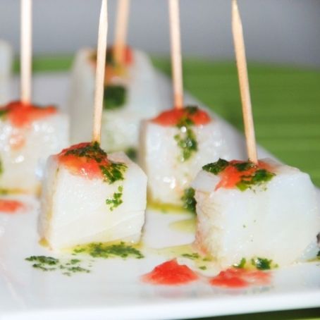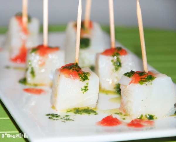 Els punxem en broquetes curtes o escuradents damunt d'un plat i ho reservem a la nevera.