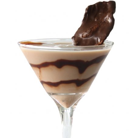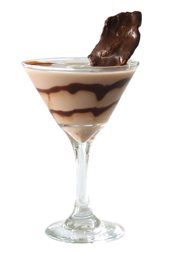 Batir el vodka y el licor de chocolate en una coctelera con hielo y verter en la copa.