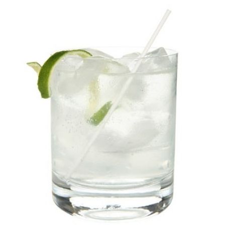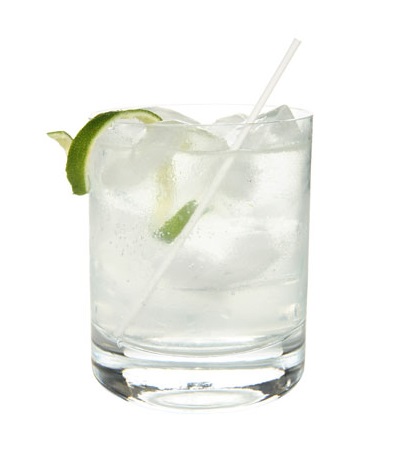 Servir el caramelo primero y luego el vodka y el agua tonica. Decorar con una hoja de menta.