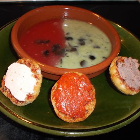 La verdad es que para el verano que ya se nos acerca, sientan bien este tipo de sopas frías, además en este caso tiene un estupendo sabor y una fabulosa presentación al combinar los dos colores sin mezclarlos.