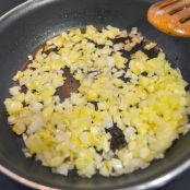 Primero sofreímos la cebolla, cortada pequeñita, en aceite de oliva.