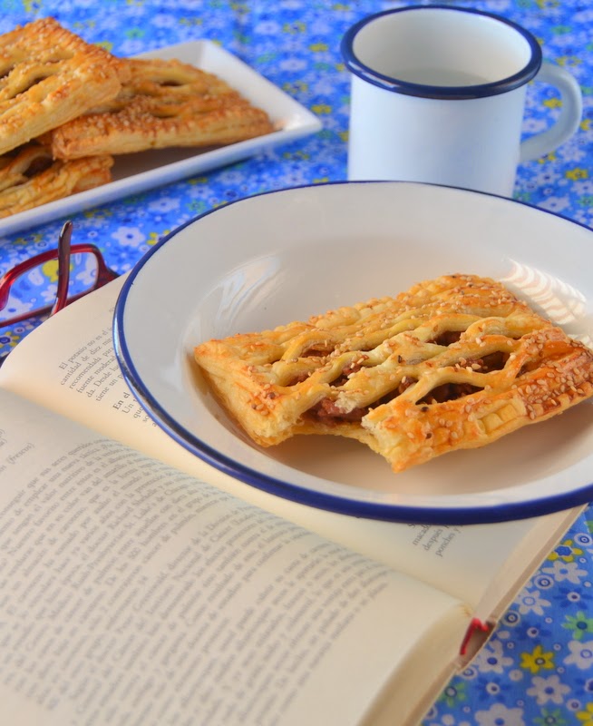 Todos los meses nos da dos opciones, una dulce y una salada y yo esta vez me he decantado por la salada. ¿Cómo iba a resistirme a estos hojaldres?