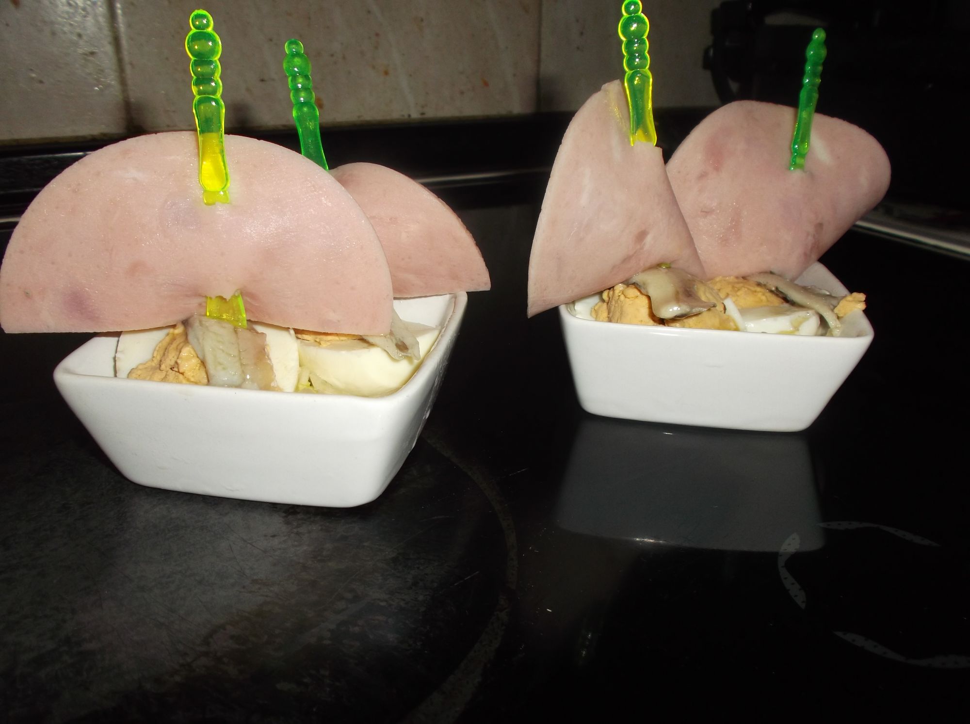En esta ocasión he querido cambiar el aspecto de unos muy vistos huevos rellenos, formando con ellos estos barquitos veleros.
