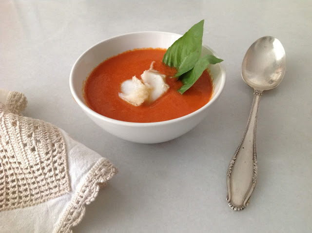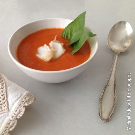 Trituráis con el brazo de la batidora los pimientos del piquillo, pepinos, ajo pelado, tomates y la albahaca.