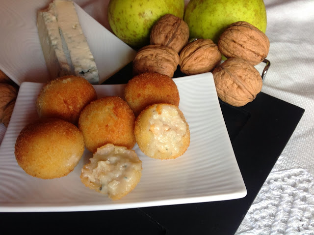 Formáis bolitas de masa (si queréis os ayudáis con un par de cucharas) las pasáis por pan rallado, después por huevo batido y nuevamente por pan rallado. Esta vez nos ha hecho gracia hacerlas redondas en vez de las clásicas alargadas.