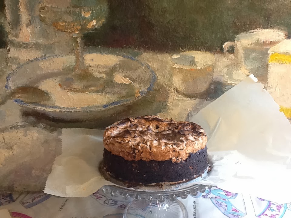 Lo sacáis del horno, dejáis reposar unos 10 minutos. Despegáis del molde las paredes del bizcocho con un cuchillo y desmoldáis. Si se os quiebra el merengue no os preocupéis, es parte del encanto de la tarta!