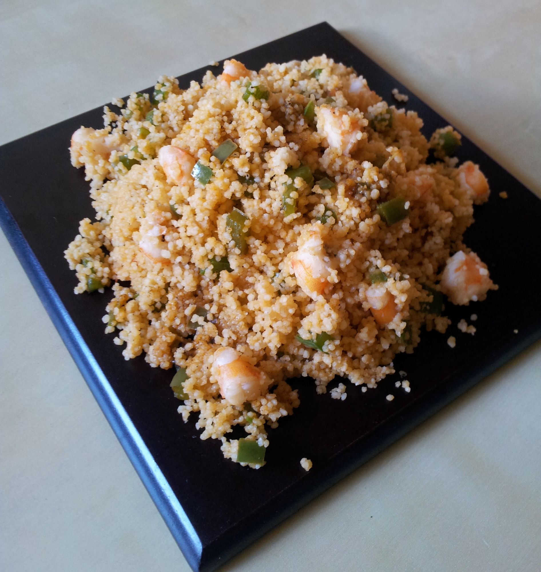 Es un plato bastante energético ya que el cous cous es sémola de trigo, el cereal que nos da energía. Puesto que va acompañado con verduras y langostinos estaría equilibrado perfectamente y se podría tomar como plato único. Pero se recomienda acompañarlo con una ensalada como por ejemplo de tomate y queso fresco.