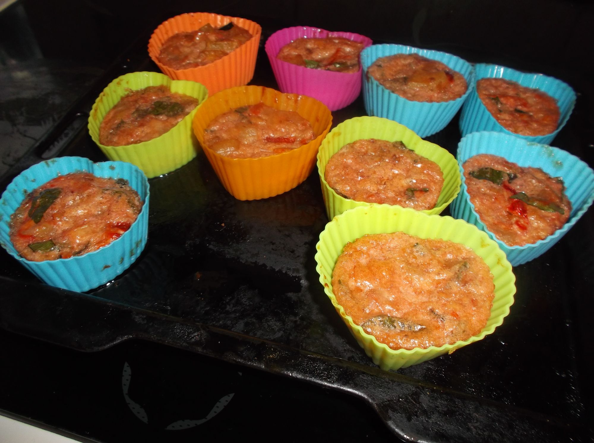 Ahora en moldes de silicona con forma de corazón (o los que tengamos) vamos colocando nuestra tortilla hasta terminar toda la mezcla.