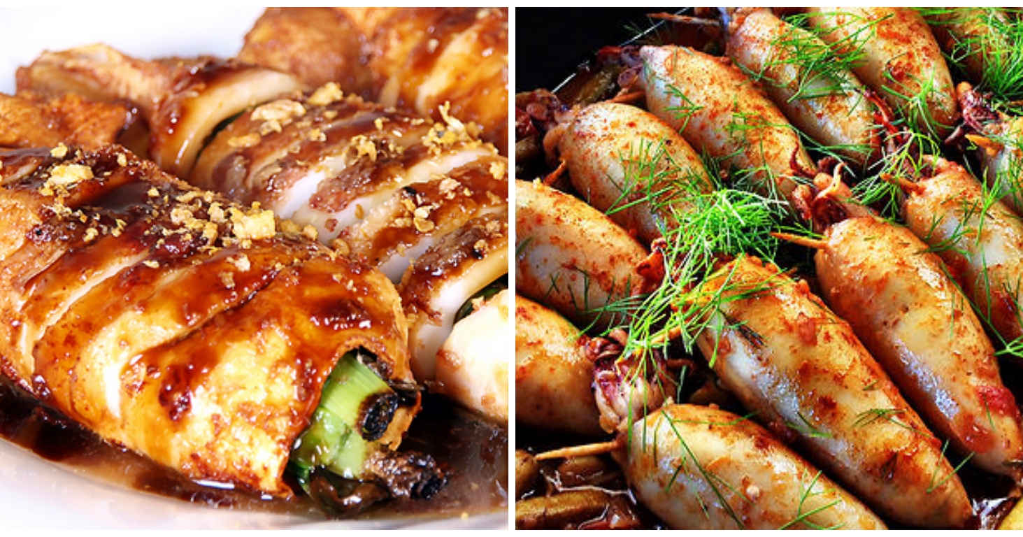 Cuando esté pochada se añaden las patas de los chipirones, los taquitos de jamón y los huevos cocidos picaditos, lo removemos bien y vamos rellenando con ello los chipirones y los cerramos con un palillo.