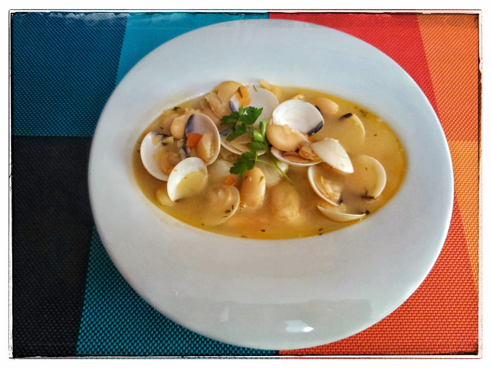 Cuando la verdurita esta pochada añadimos las almejas y nuestro majado de ajo y perejil y cocinamos unos minutos, añadimos el vino blanco y dejamos cocinar junto hasta que todas las almejas se han abierto este será el punto perfecto para añadirlo todo a la cazuela de los judiones, lo cual dejaremos hervir unos 5 minutos todo junto y estará listo para servir.