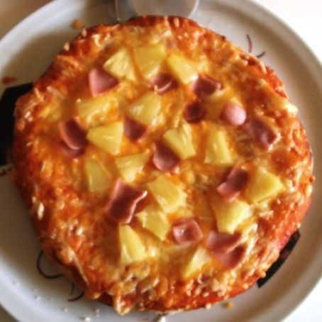 La masa de la pizza es común para todas las pizzas, en este caso el gusto se lo da la piña.