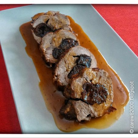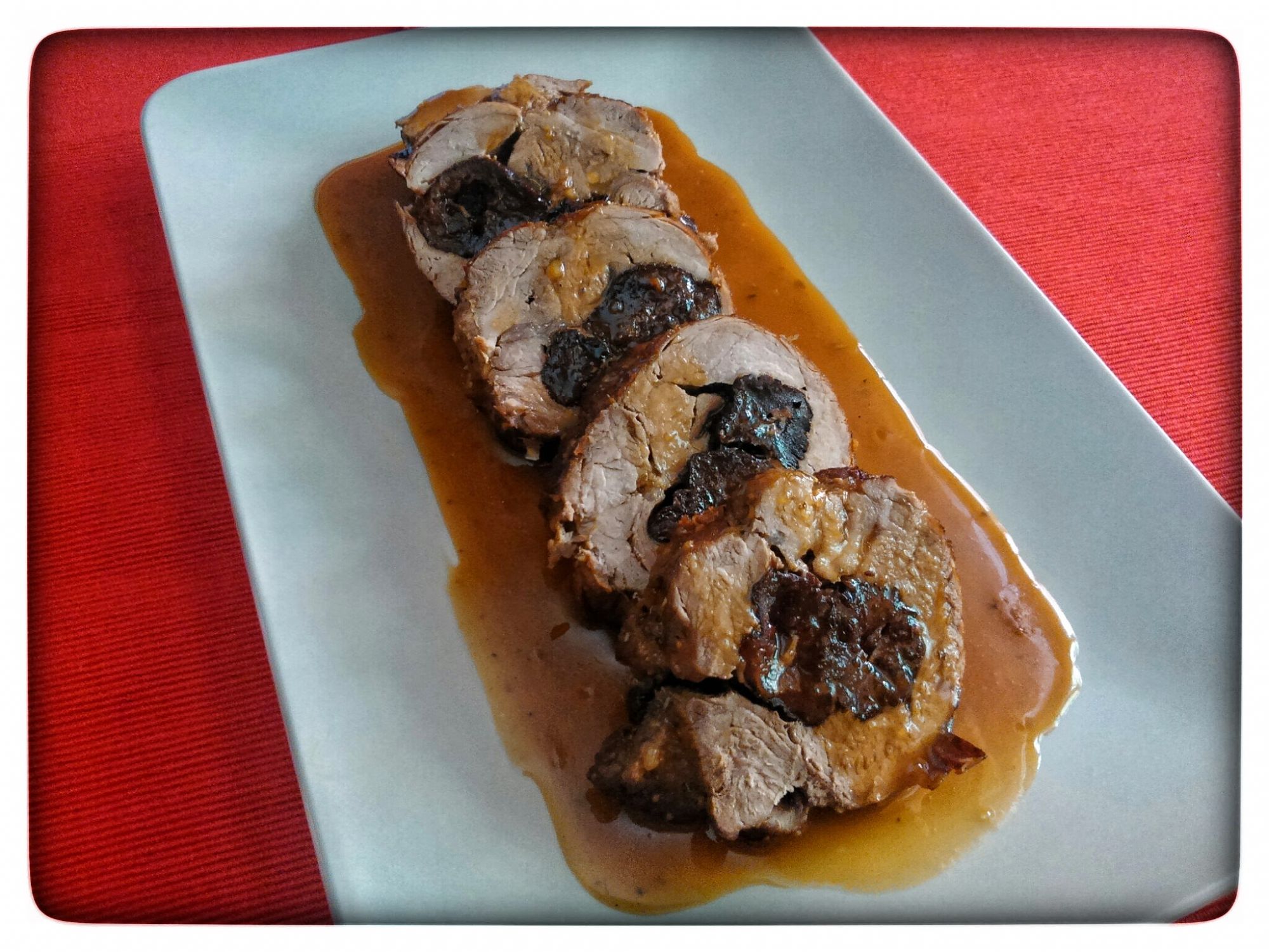 Ahora salpimentamos por los dos lados y en el centro colocamos las ciruelas haciendo una fila de dos si son grandes, si no de tres en tres hasta cubrir todo el medio dejando un par de dedos libres en los extremos.