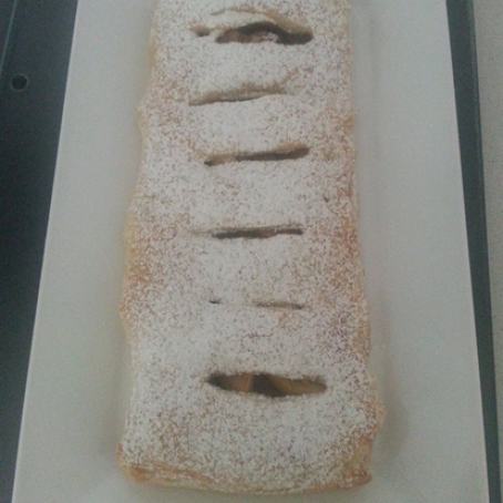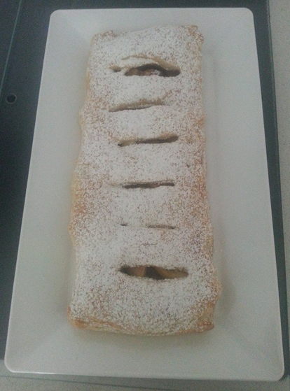 Hacemos unos cortes en la otra parte del hojaldre, y cubrimos la parte de la manzana y sellamos bien.