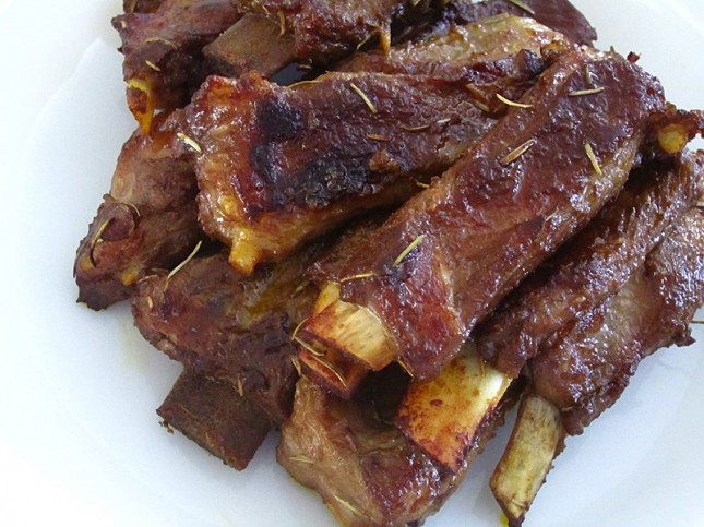 Echamos el chorro de aceite y el vinagre, y embadurnamos las costillas.