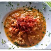 Es una pedazo de sopa que esta tremenda de sabor, le podemos poner unos fideos de jamón para decorar, espero que os guste tanto como a mí.