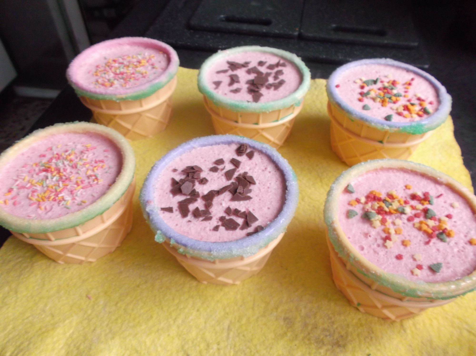 Preparamos dos platos, uno con un chorrito de menta y otro con azúcar.