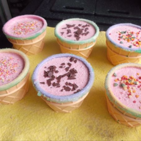 Ahora viene la gracia de la presentación, mojamos el borde de los recipientes en la menta y después los pasamos por el plato donde tenemos el azúcar para que nos quede el borde verde.
