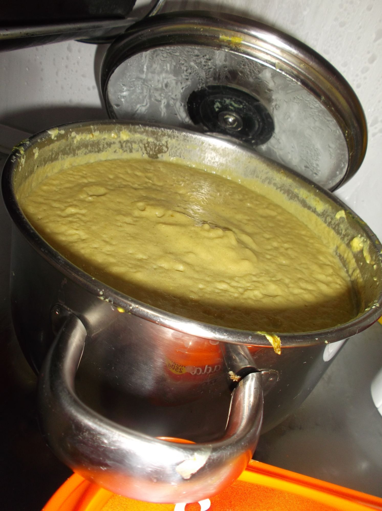 Dejamos cocer a fuego muy lento alrededor de una hora, trituramos con la batidora y retocamos el sabor de sal y pimienta.