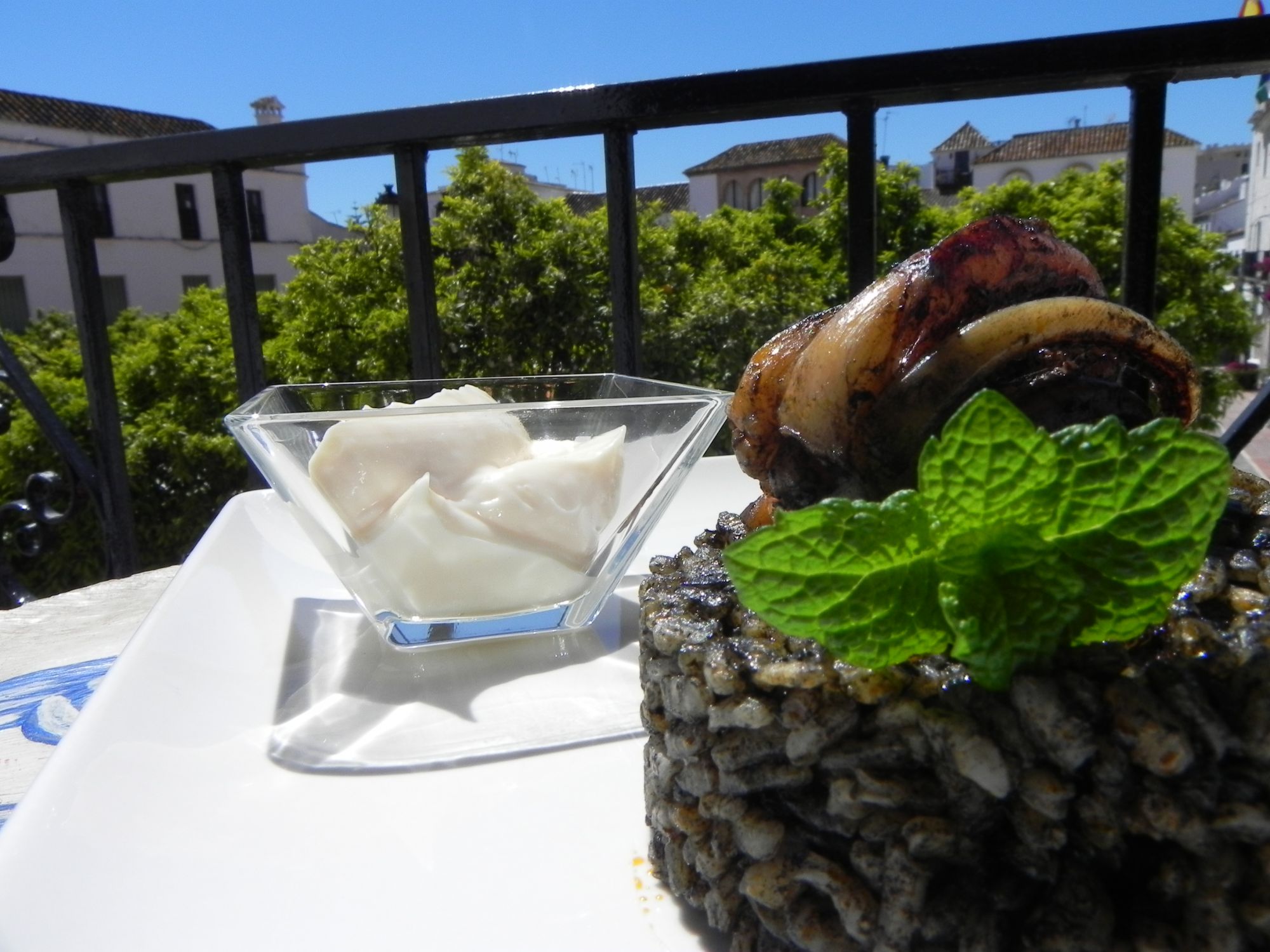 Este es uno de mis arroces favoritos por la sencillez a la hora de hacerlo y por ese saborcillo tan rico que le da la tinta, sin menospreciar al alioli, un buen alioli es esencial.