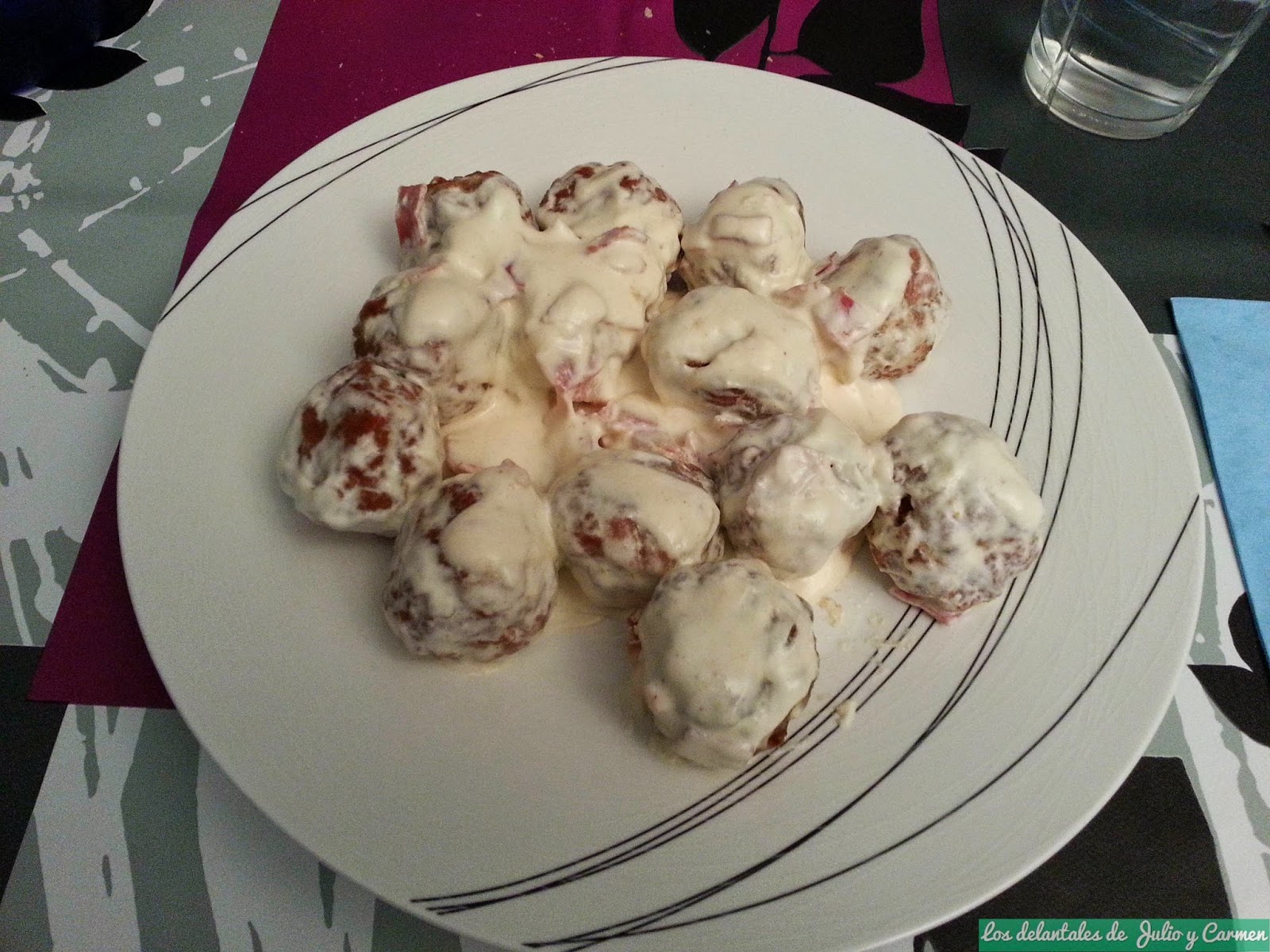 Típicas albóndigas con una salsa diferente y muy cremosa: salsa carbonara.