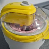 Enchufamos la heladera, la ponemos en marcha y vamos echando la mezcla anterior poco a poco, mientras va dando vueltas.