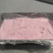 En este momento ya podemos comernos el helado, tiene una textura blandita pero está hecho. Para guardarlo, debemos utilizar recipientes metálicos, se conserva mejor. Este de la foto es un molde de plumcake pequeño, los hay de todos los tamaños en los chinos.