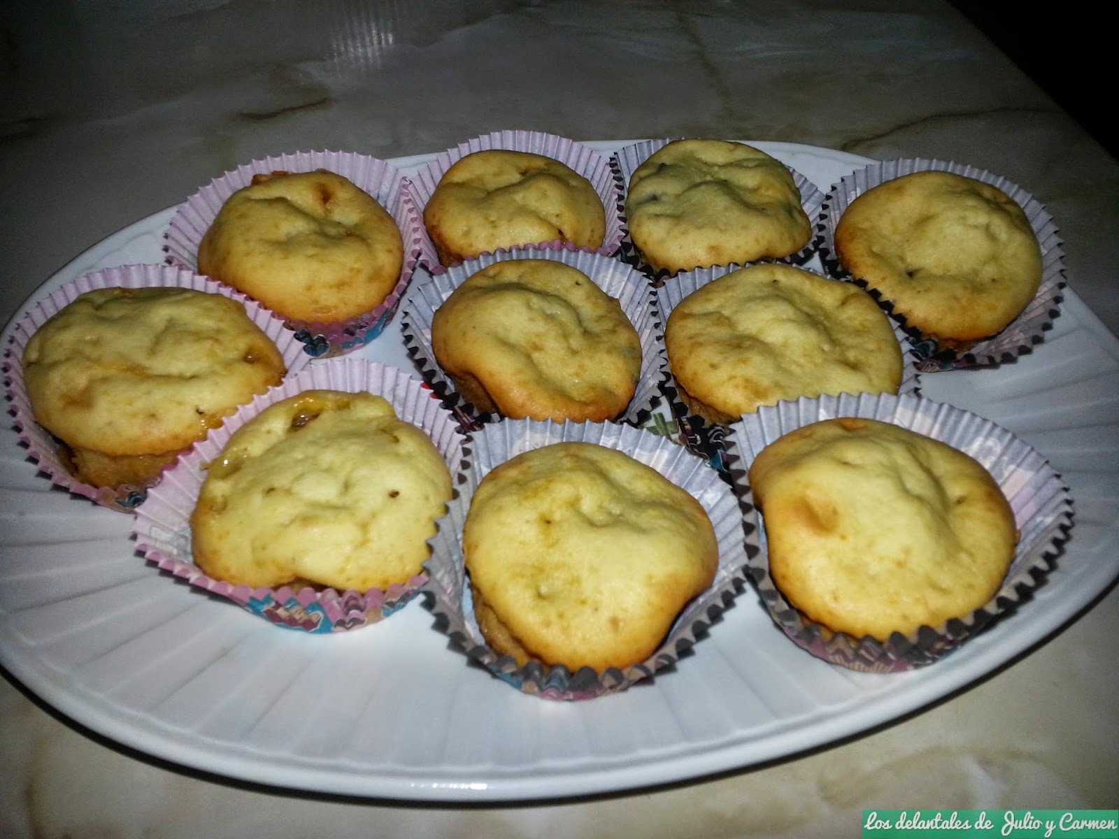 CONSEJO: Nosotros hicimos los muffin con los dos tipos de chocolate y quedaron de muerte, pero tambien tengo que deciros que quedan algo mejor (sobre todo en el aspecto de la presentación), con el chocolate negro. Ya comprobareis que el choco-blanco, se derrite con mucha mas facilidad que el negro, por lo que al abrir el muffin, no veremos los trozos, ya que se habrán derretido. Pero no dejeis de probarlos, ya que aunque no veais los chips, el chocolate está y le da un sabor delicioso.