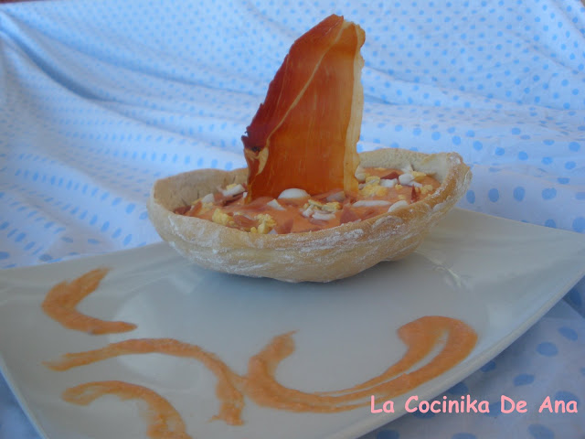 Un homenaje que le hago a mi Córdoba y en concreto a ese río que se pasea por ella el Guadalquivir. Y no hay nada mas apropiado que hacerlo con un Salmorejo plato típico cordobés servido en una barquita hecha de pan...para no dejar ni las migas.
