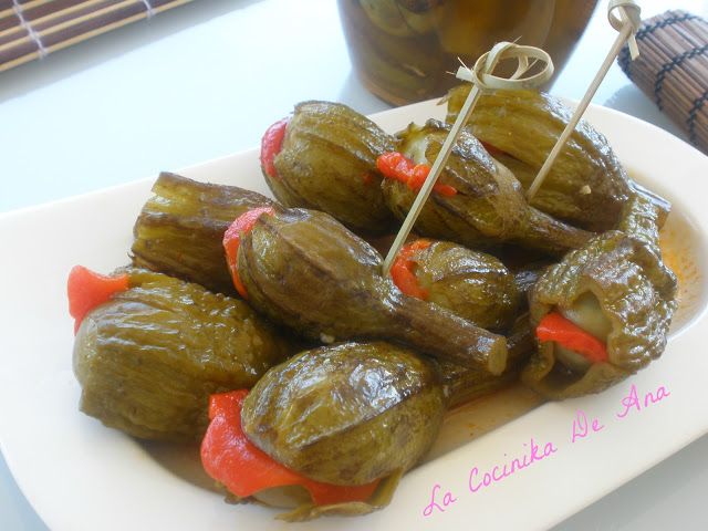Este tipo de encurtido es muy típico en Andalucía, donde es tradicional prepararlas aliñándolas en casa, aunque también es fácil de encontrar en los supermercados envasadas y listas para su consumición. Y como ya estamos en temporada de berenjenas y aprovechando que unos amigos me han dado una bolsa de ellas, me dije "ésta es una receta que aún no he subido a mi blog, pues ya es hora de subirla y compartirla con mis amig@s"...